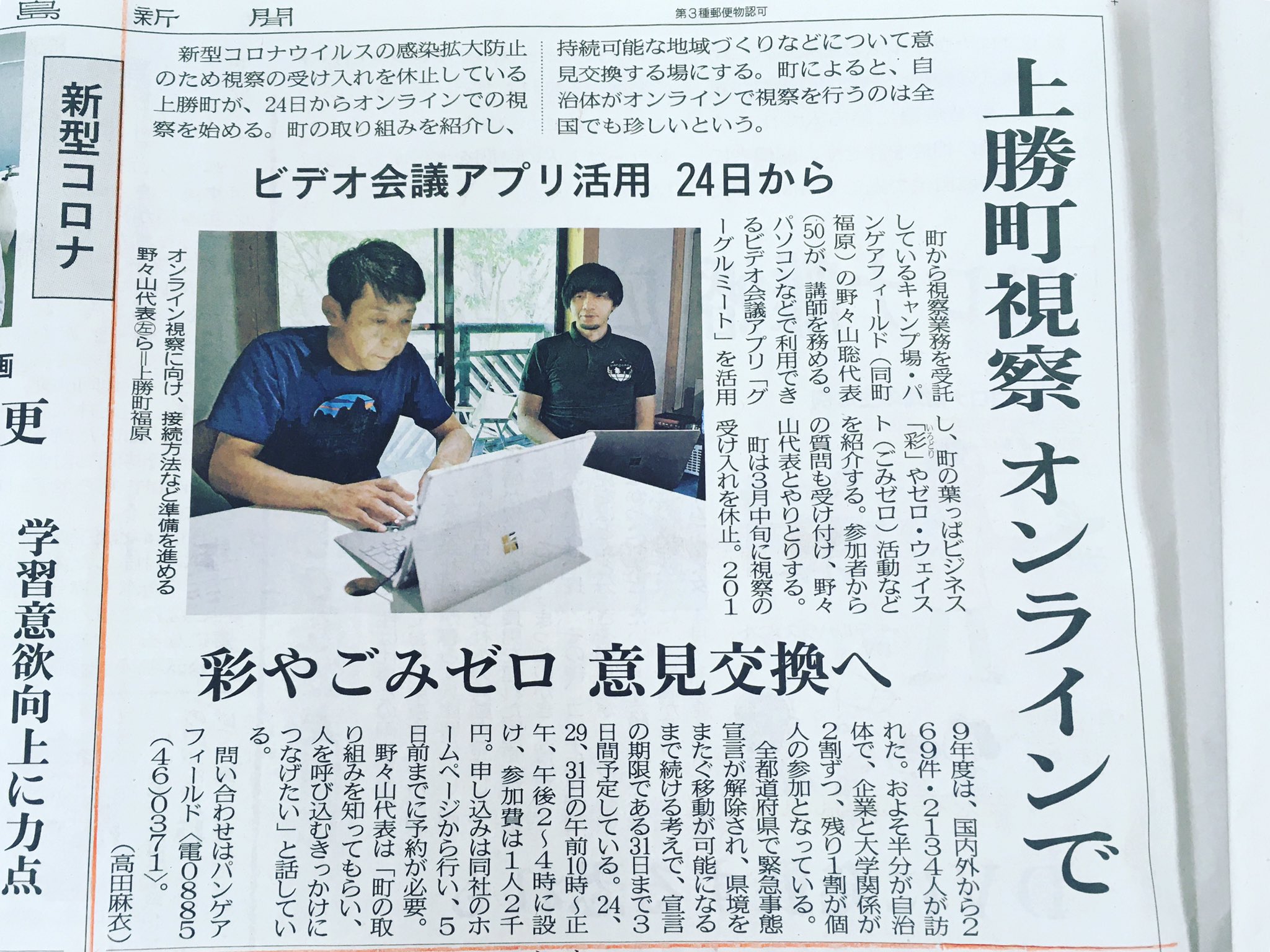 パンゲアフィールド On Twitter 5 17付の徳島新聞朝刊でも記事掲載していただいてます ありがとうございます 上勝町オンライン視察 Tokushimapress