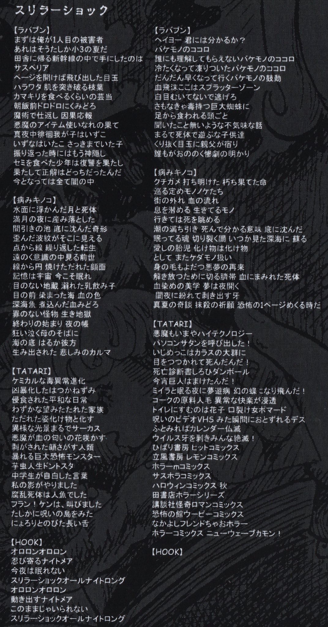 崇山祟 たかやまたたり على تويتر 私トラック提供ラッパーとして参加ホラー漫画マニアラッパーがつどったホラーマンガコアヒップホップ ケケケッ スリラーショックep データ販売中現在視聴も可能 リリックには異常な量のホラー漫画情報が隠されている 古書店主