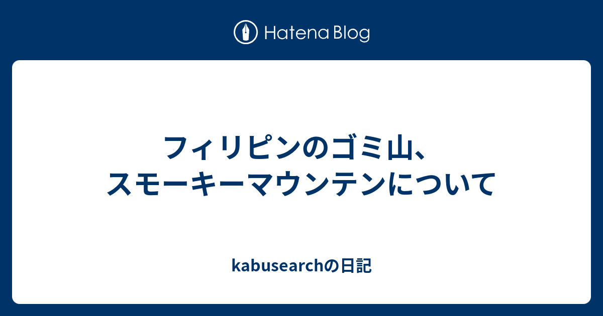 フィリピンのゴミ山 スモーキーマウンテンについて Kabusearchの日記