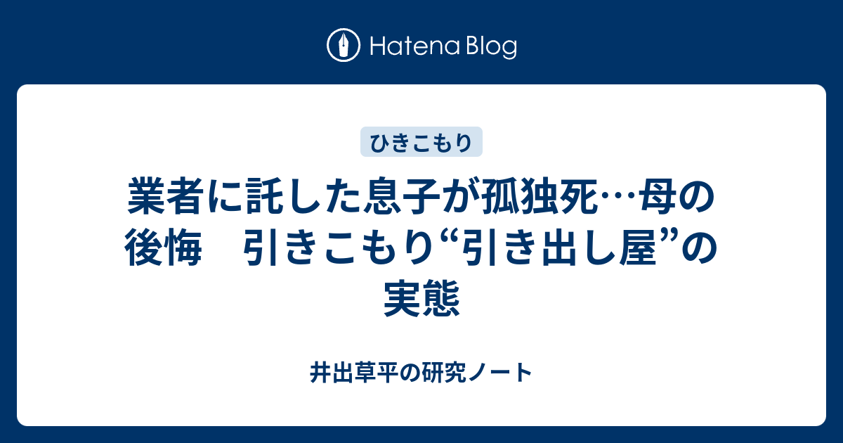 業者に託した息子が孤独死 母の後悔 引きこもり 引き出し屋 の実態 井出草平の研究ノート